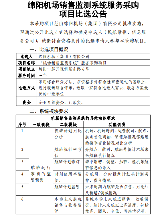 綿陽(yáng)機(jī)場(chǎng)銷(xiāo)售監(jiān)測(cè)系統(tǒng)服務(wù)采購(gòu)項(xiàng)目比選公告