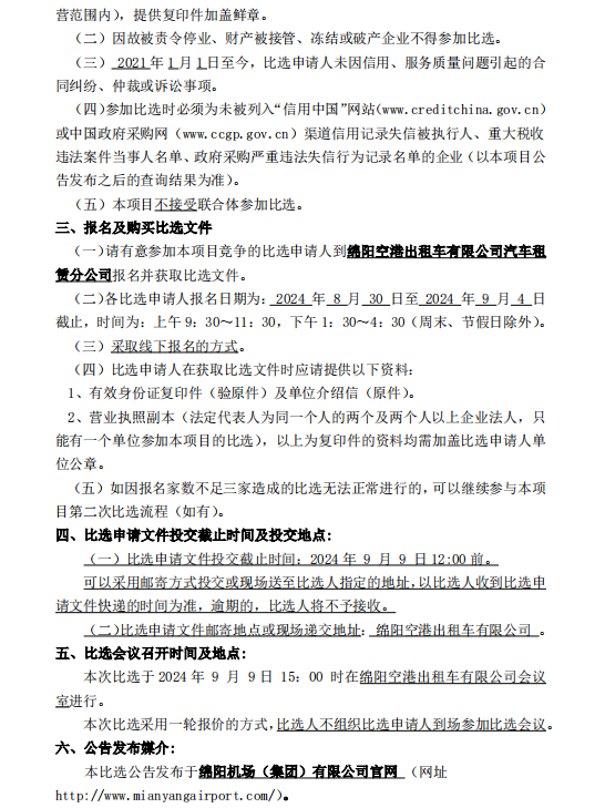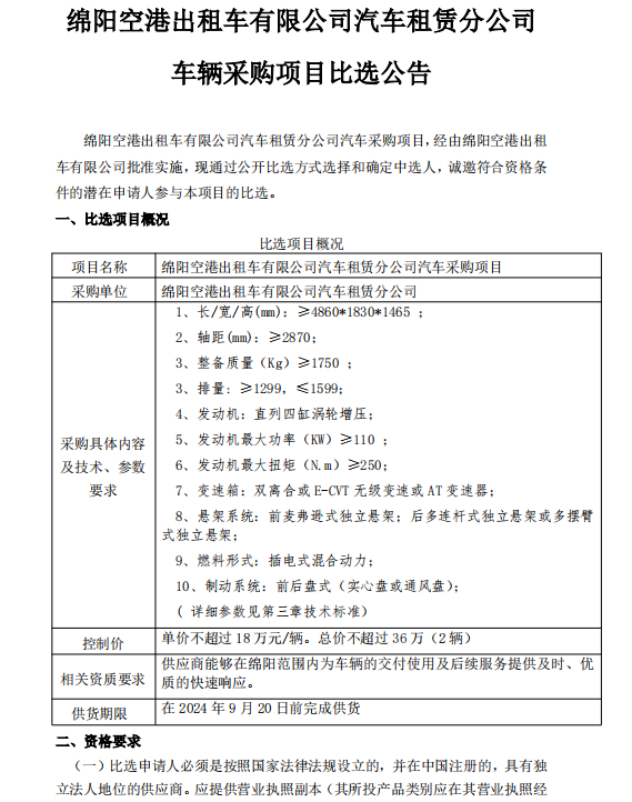 綿陽空港出租車有限公司汽車租賃分公司車輛采購(gòu)項(xiàng)目比選公告